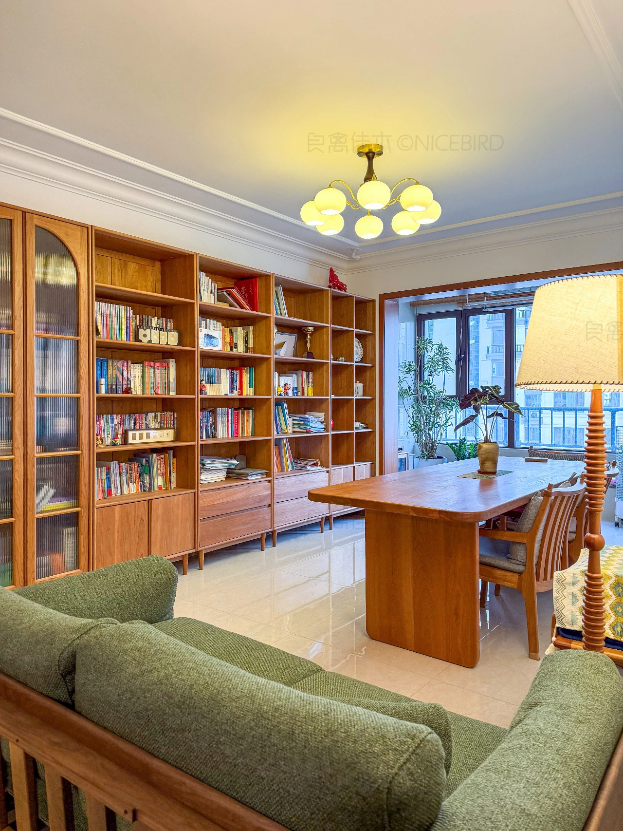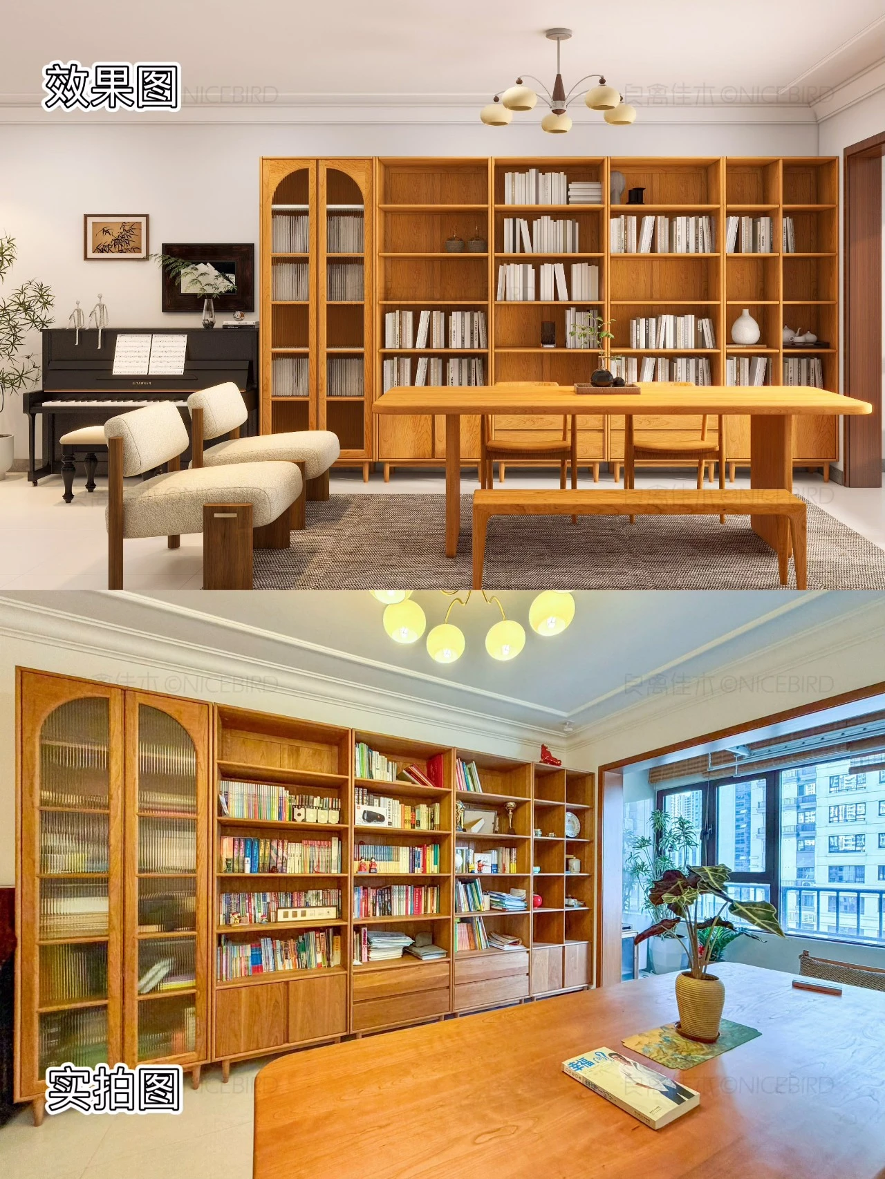布置一面书柜墙+大长桌