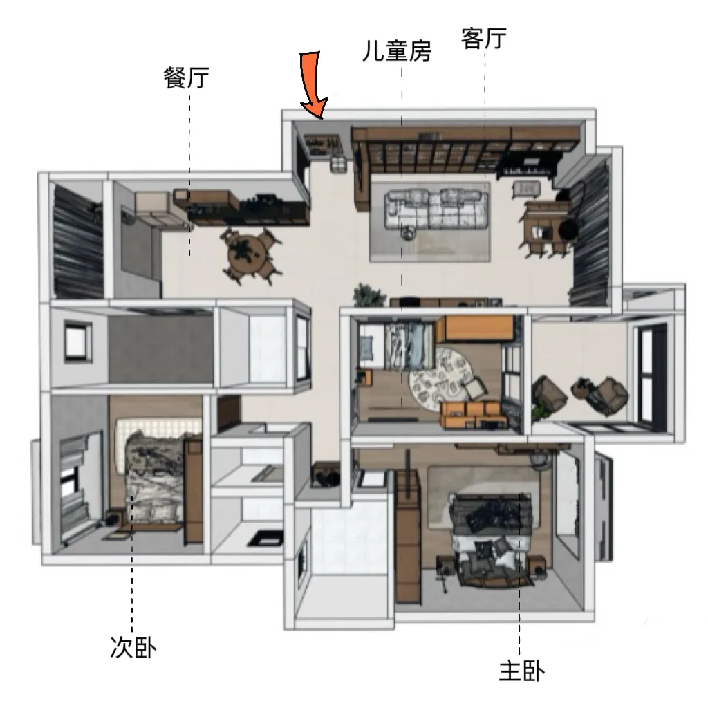 一个入户即厅的户型,客餐厅分别在进门的左右方向
