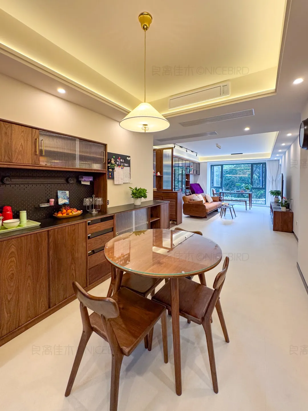 餐厅也是比较方正的空间,遵循着功能靠边的原则