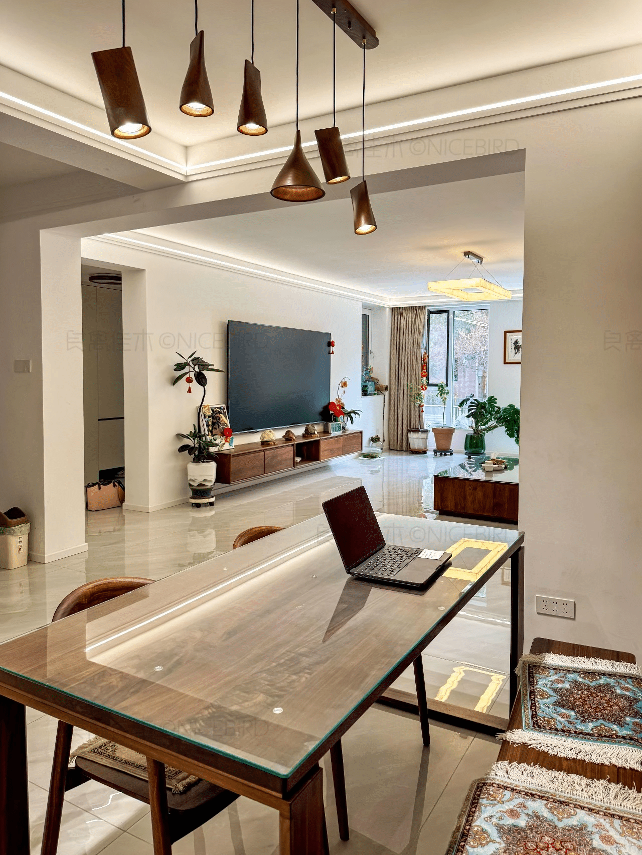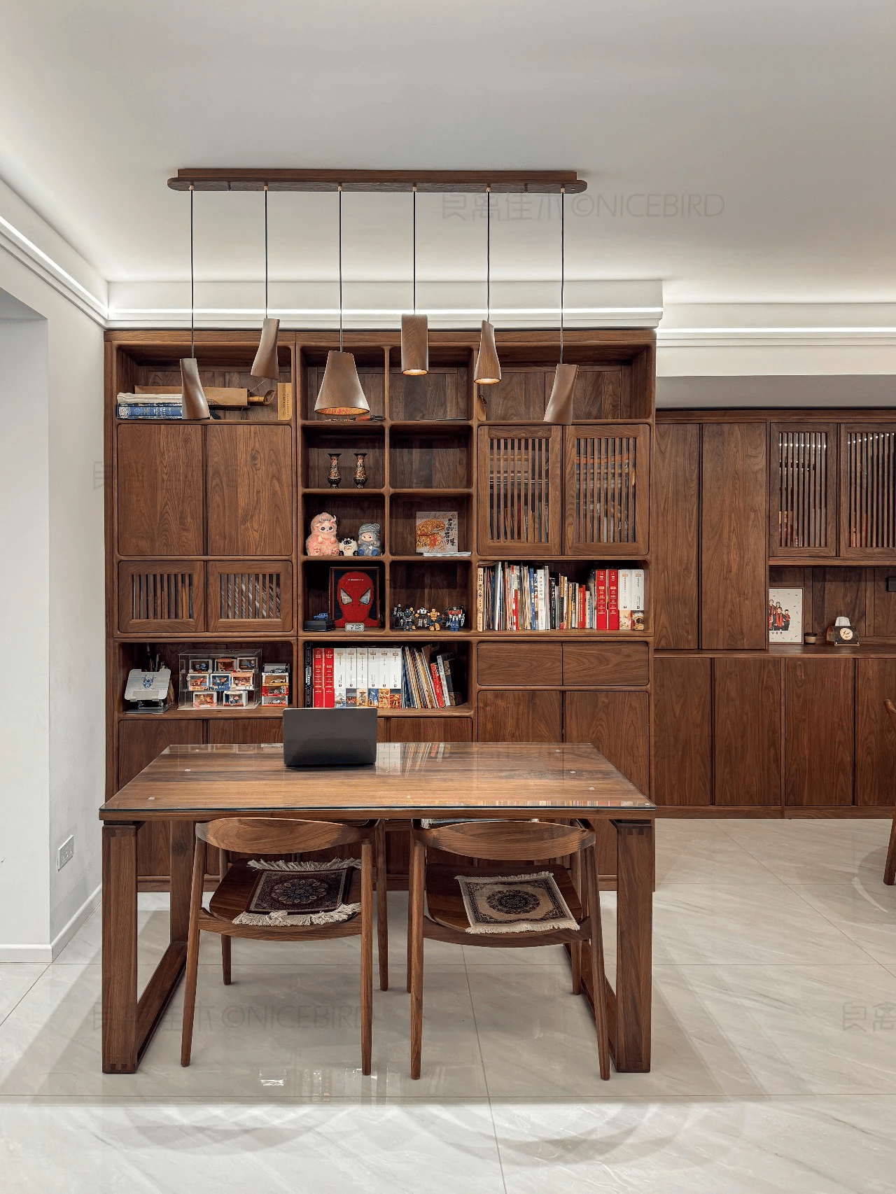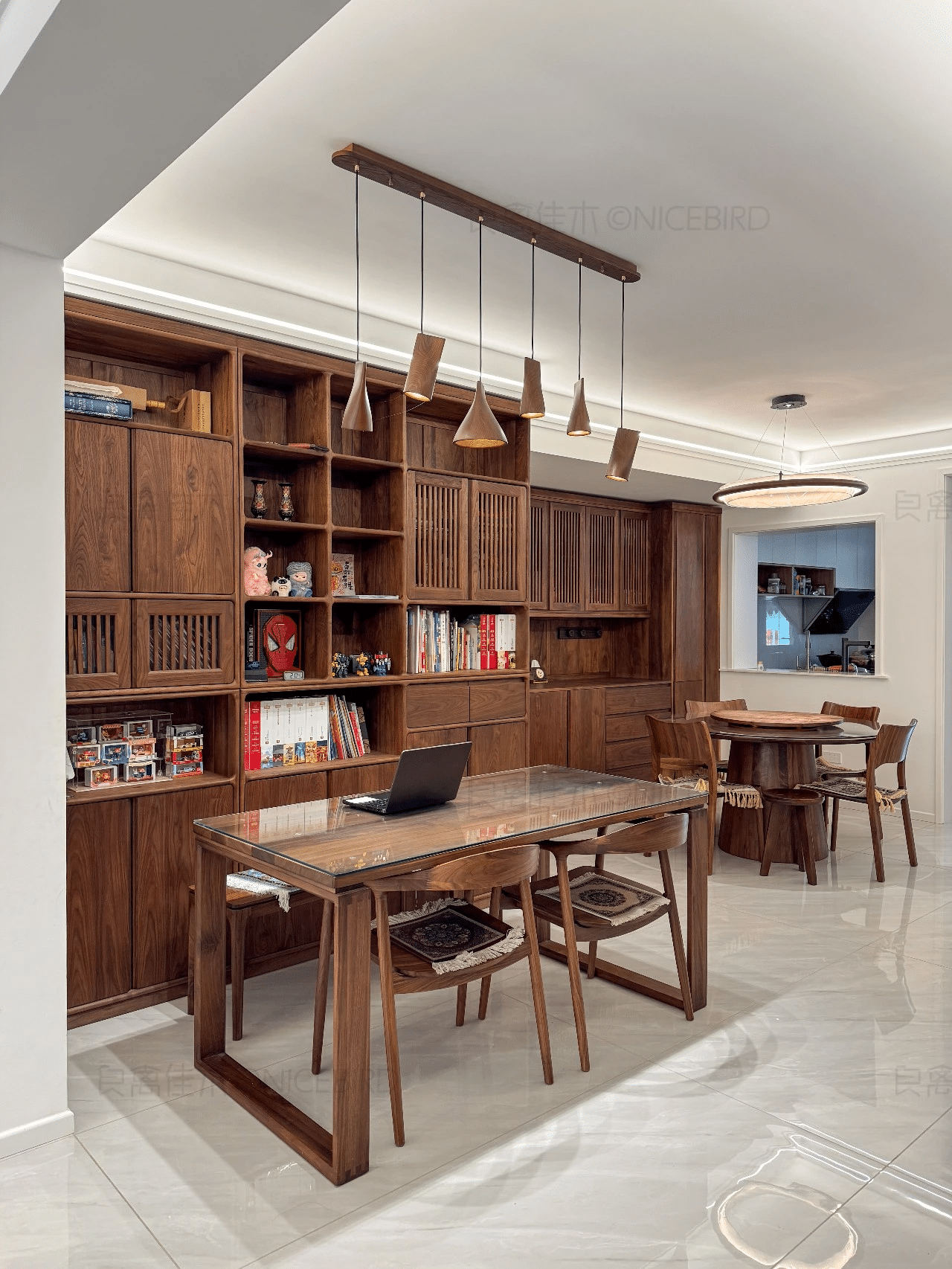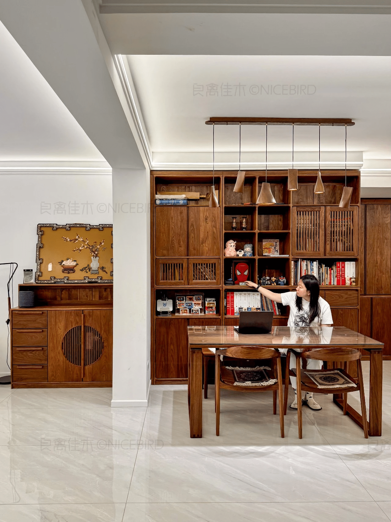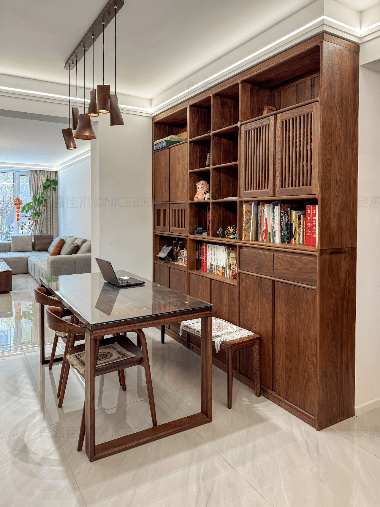 质感无敌小户型无主灯书房+客厅+餐厅 看了好几家最终选择了良禽。质感无敌期待入住E宗 。]r