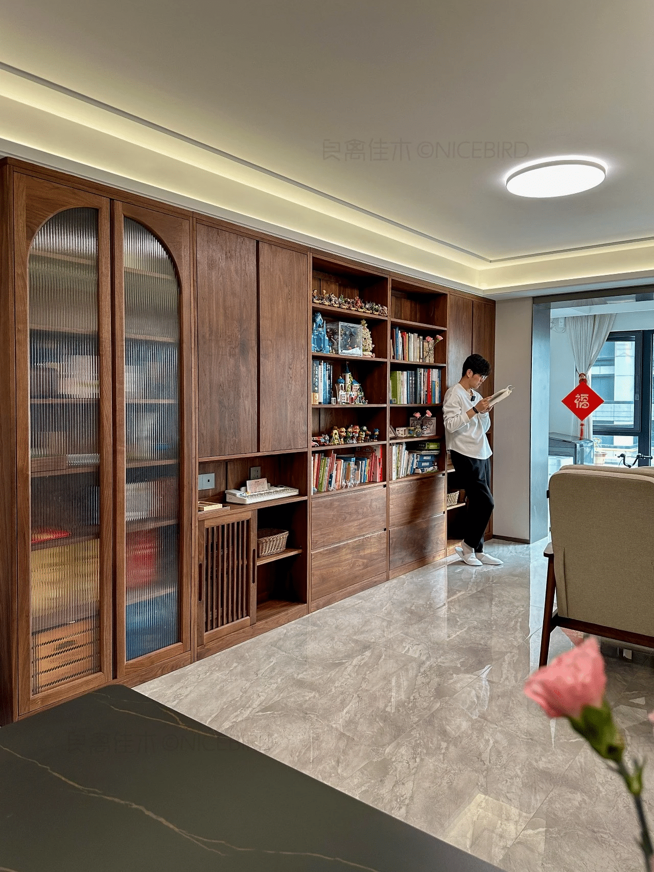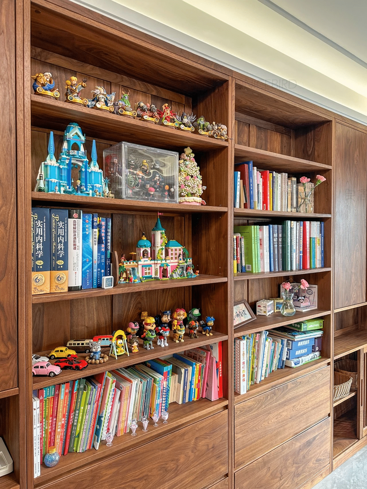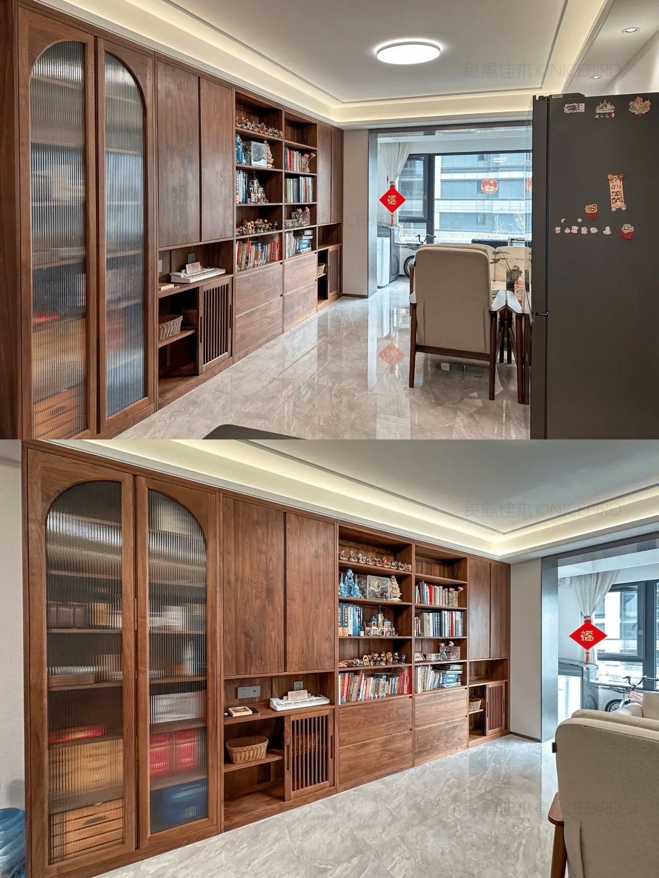 右侧书柜是今年的。良禽的家具木质好做工细。虽然工期稍微久了点。但家具到家后由衷欣慰: 品质值得这份等待!推荐了好几个亲友。自己家儿童房也将迎来良禽的新定制…