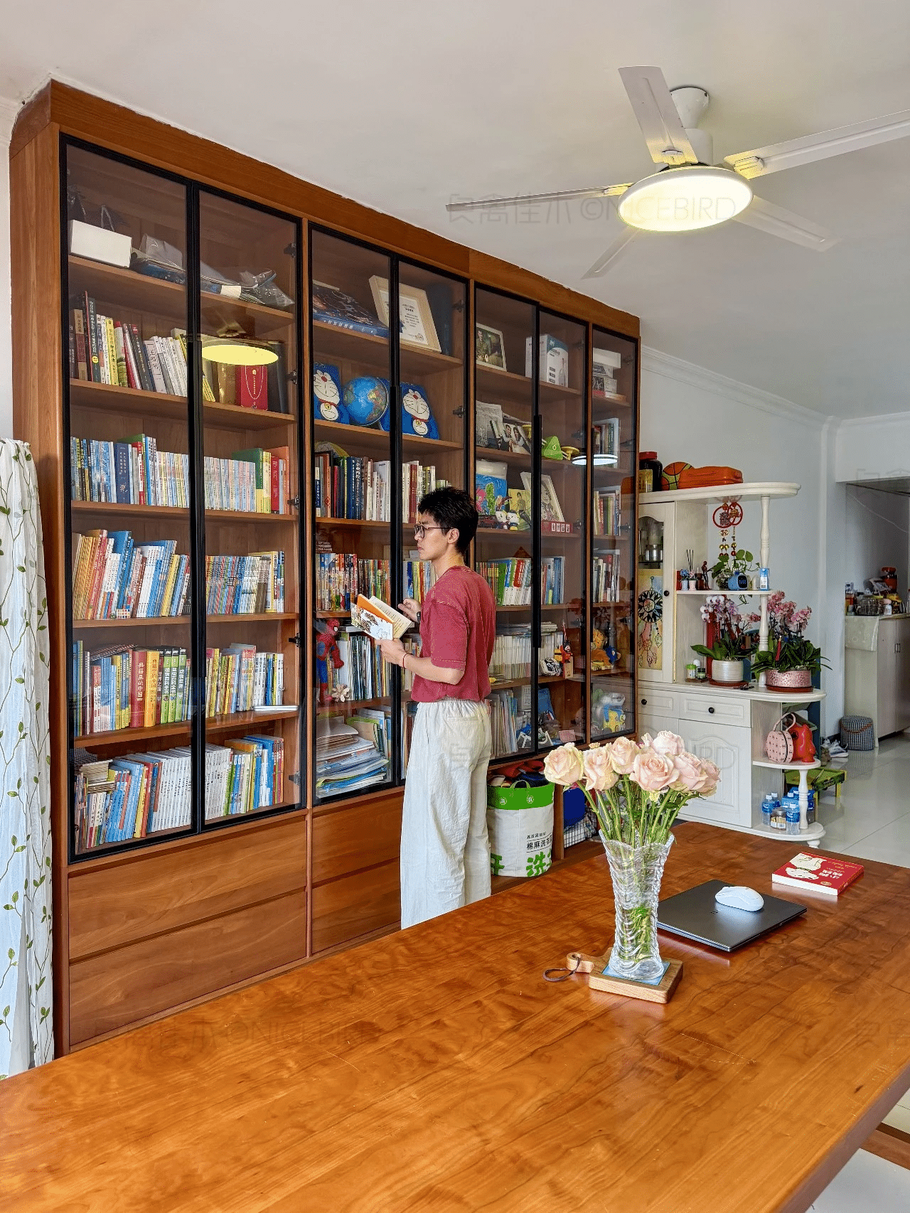 「案例介绍」业主坐标:广东广州定制空间:客厅定制家具材质:北美樱桃木设计师:徐素燕 小户型客厅无需待客功能保留